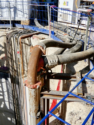 Two 20 m deep wells to lower and raise a mini-tunnel boring machine, lay an 800 mm diameter pipe and two 400 mm pipes 15 m below ground, over a length of 117 m.