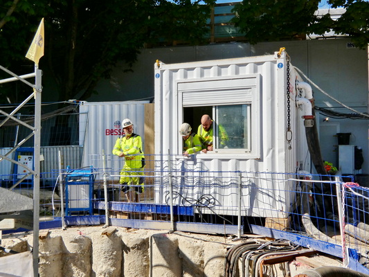 The mini-tunneling machine is wire-guided from the surface by an operator in this site cabin. © PP