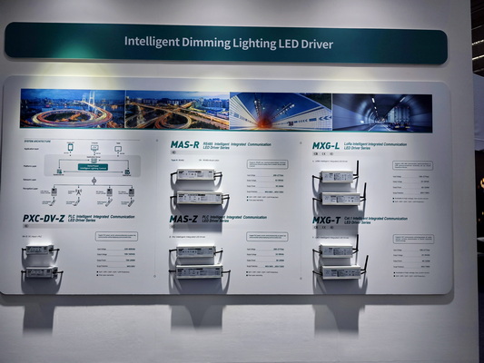 In addition to drivers for interior lighting, we saw at Light + Building drivers for exterior LED lighting: public lighting, stadiums, etc. They use different communication protocols, including the LoRa Wan wireless protocol with a radio antenna directly on the driver, control by RS485 or by an industrial programmable logic controller (PLC). © PP