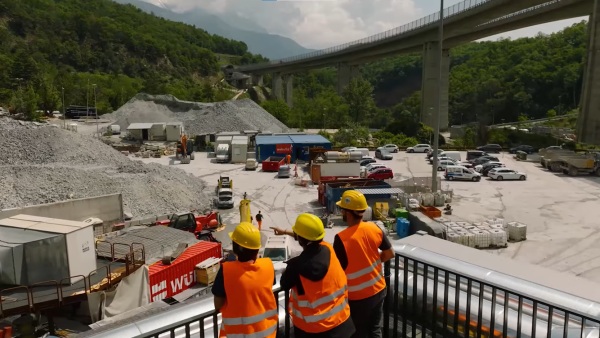There construction of the cross-border section of the new Lyon–Turin railway line65 kilometers long between Saint-Jean-de-Maurienne and Susa, is progressing simultaneously open-air and underground, in France and Italy, with more than 3,300 people mobilized.