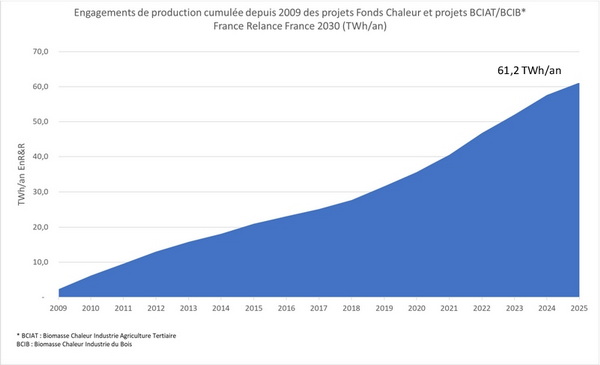 Cumulative production commitments since 2009 for Heat Fund projects. © ADEME