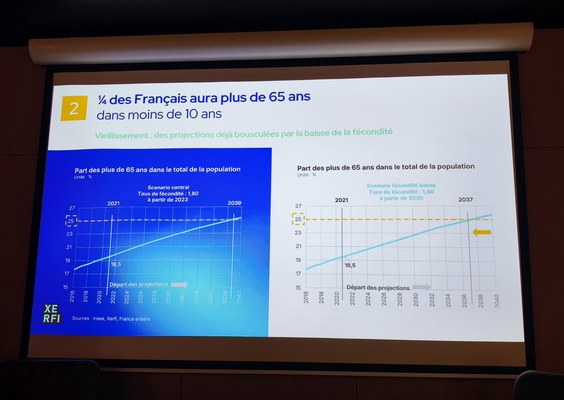 As a result of the drop in births, the population is aging and from 2037, the proportion of people over 65 will increase to 25% and will continue to rise thereafter. © Xerfi