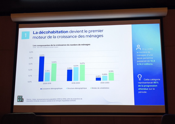 The number of households is expected to continue to grow until around 2045, but mainly because of de-housing. As of 2022, the average number of people per household was only 2.15 and this is expected to continue to slowly decline. And cohabitation will be the main factor in the growth in the number of households. © Xerfi