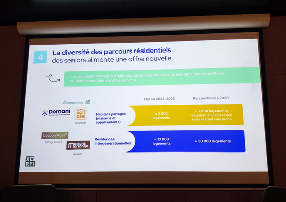 Xerfi indicates that new types of housing are appearing for seniors who are still independent – intergenerational residences or beguinages – but also for seniors who are already vulnerable, but not totally dependent: shared accommodation and shared houses. Some developers, such as Domani, AGES & VIE, have launched into shared housing, which should nevertheless remain a niche until around 2030. While others, such as Cocoon’Ages (Eiffage Immobilier) and Maisons Marianne (Atland) are promoting intergenerational residences with 30,000 housing units in perspective by 2030. © Xerfi